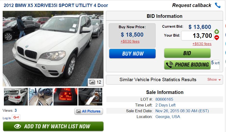 If you want to save more money, you can find a 2010-2012 BMW car for even lower price, that requires some repair works. You can also have a great chance to bid for any 2010-2012 BMW you like starting from $100 on the auto auctions.