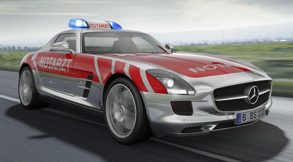 At the peak of the company’s competitors Mercedes-Benz in 2011, presented to the German exhibition of special equipment RETTmobil «the fastest,” ambulance “in the world” – a supercar SLS AMG Emergency Medical Concept. This car is also the most unusual in the history of medicine: the mechanism of its doors was like a “gull wing”. Under the hood, the “miracle car” was placed powerful naturally aspirated V8 engine of 6.2 liters (571 horsepower, 6 800 rev / min). The supercar was so fast, that was dispersed to hundred in 3.8 seconds and a top speed of 317 km / h. Unfortunately, the next Mercedes-Benz plans have not moved in this matter.