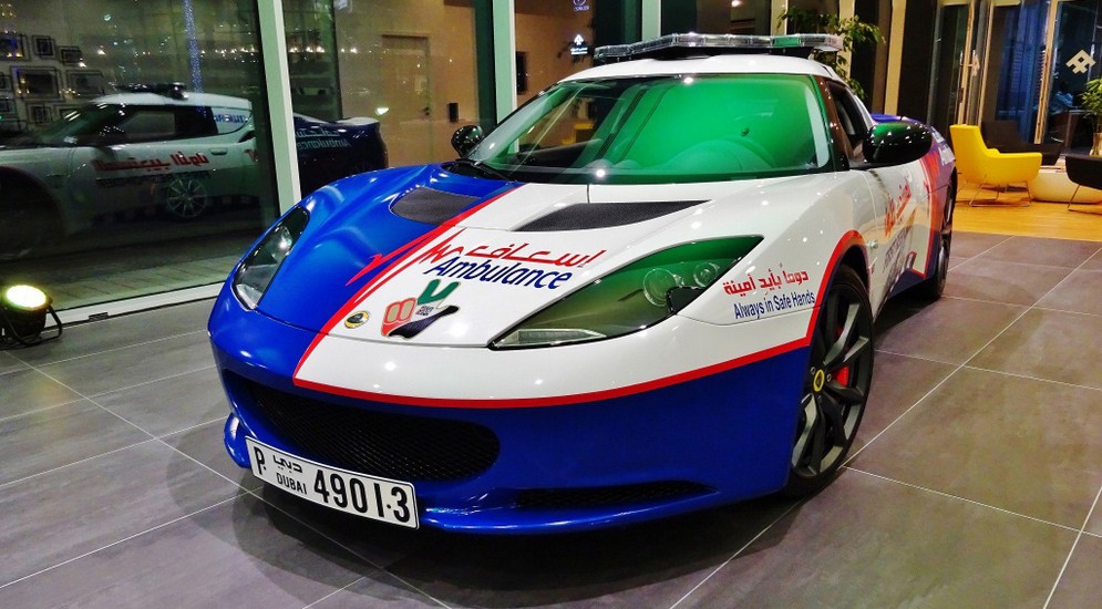 However, the championship in equipping medical staff gets the UAE. Dubai physicians have at their department several special units of the coupe version of Lotus Evora. This car is equipped with a 3.5-liter V6 rated at 350 hp. s., holds a “top speed” of 300 km / h, and accelerates up to a hundred in 4.8 seconds.