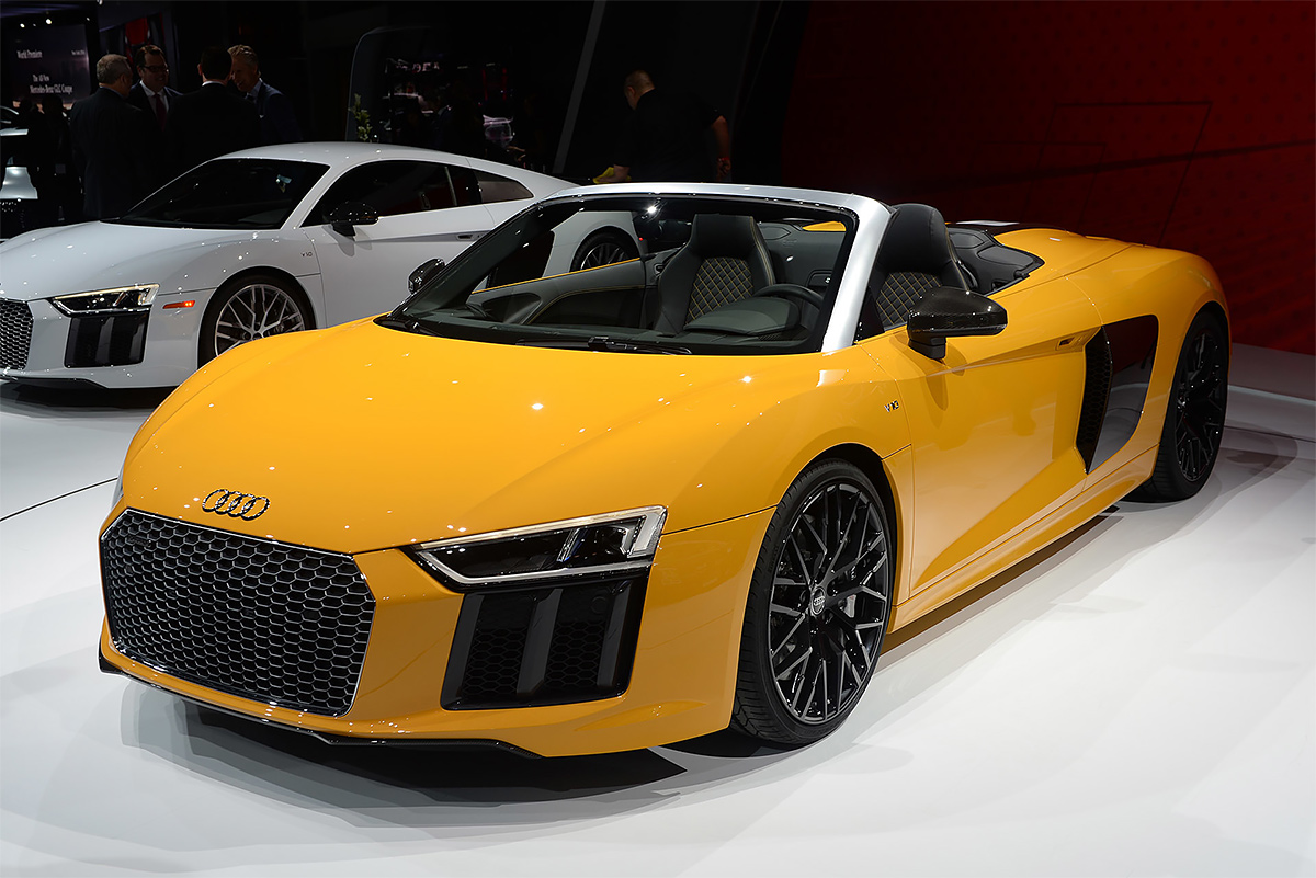 Sports car Audi R8 of new generation, which was shown a year ago, finally got an open version. The car is equipped with a soft folding roof, which opens in 20 seconds at speeds up to 50 km per hour.